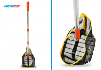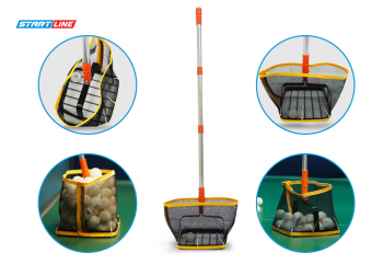 Длинная рукоятка, изготовленная из легкого и прочного материала, обеспечивает достаточную дальность действия, позволяя собирать мячи в вертикальном положении без нагрузки на спину и поясницу.